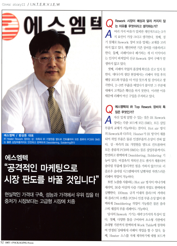 제 납땜의 전문성 확보는 일본 MPI사의 SMD Rework, MOUNTER 장비 수입 판매와 서비스를 시작하고 3년 후 신제품 Rework 장비 생산과 Stand alone Reflow 생산과 판매, 총 40년의 세월간 더 나은 장비로 개발해 왔습니다.